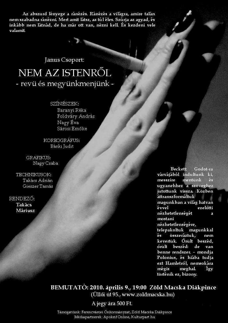Nem az Istenről – 2010. április 9., 19:00 – revü és megyünkmenjünk – helyszín: Zöld Macska Diákpince, Budapest IX., Üllői út 95.