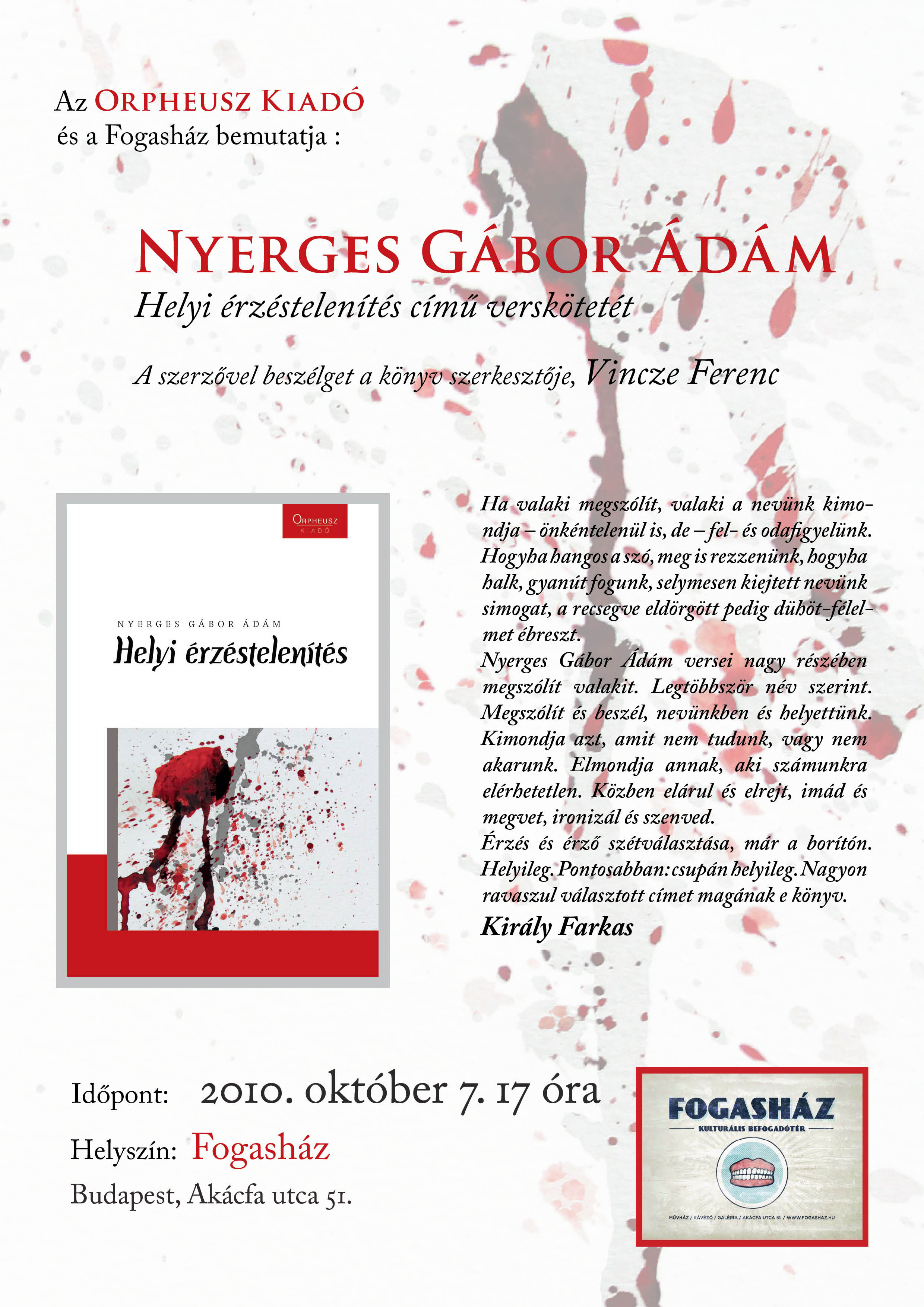 Helyi érzéstelenítés – könyvbemutató (programajánló) apokrifonline2010. október 4.2021. július 11.Ajánló, Könyvbemutató, Programok Bejegyzés navigáció ElőzőKövetkező Megosztás: Facebookon való megosztáshoz kattintás ide.(Új ablakban nyílik meg) Facebook Click to share on X(Új ablakban nyílik meg) X Tetszik Betöltés... Kapcsolódó bejegyzések