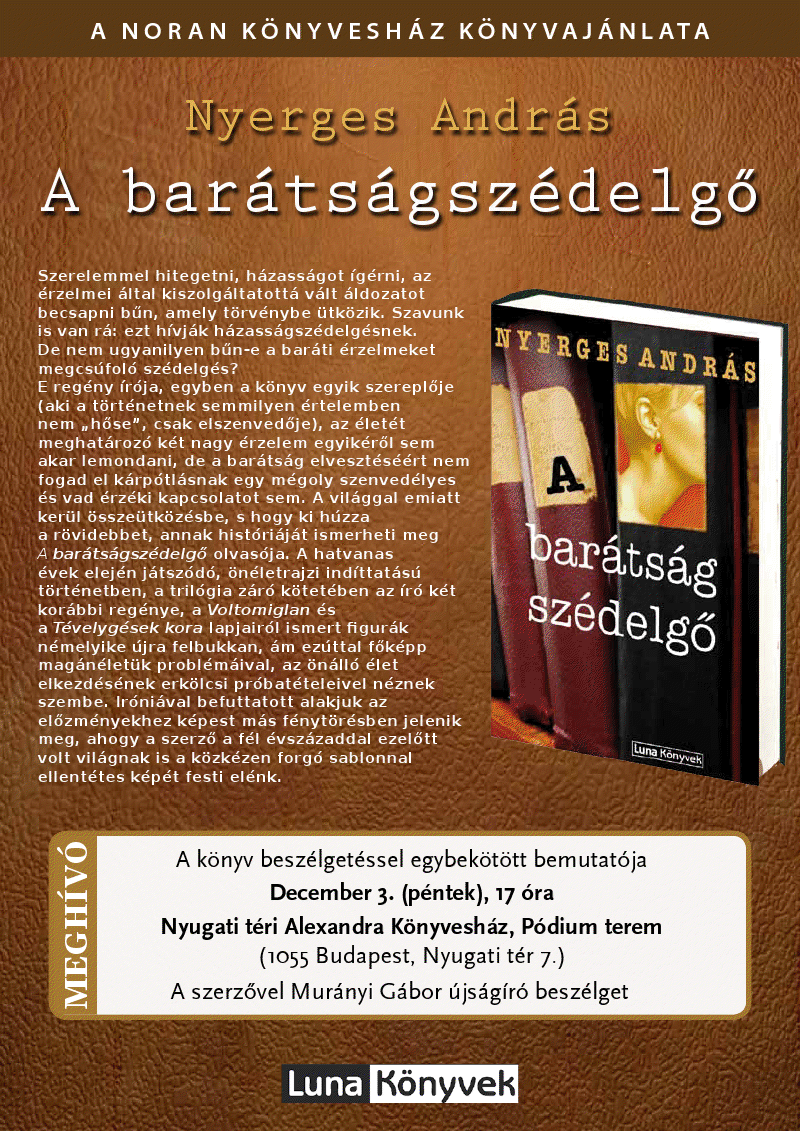 A barátságszédelgő – könyvbemutató (programajánló) apokrifonline2010. december 1.2010. november 25.Ajánló, Könyvbemutató, Programok Bejegyzés navigáció ElőzőKövetkező Megosztás: Facebookon való megosztáshoz kattintás ide.(Új ablakban nyílik meg) Facebook Click to share on X(Új ablakban nyílik meg) X Tetszik Betöltés... Kapcsolódó bejegyzések