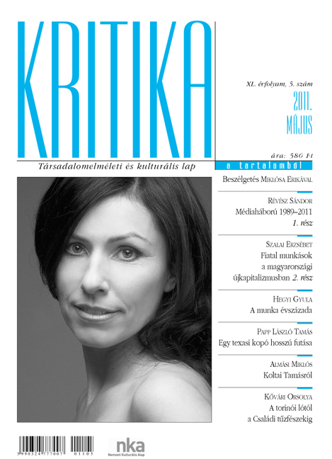 ömlik a tenger…. Kinek hát ? – Egy feltámasztott zsáner élveboncolása: Vass Norbert tanulmánya a Nem vénnek való vidék c. filmről a Szkholion 2011. tavaszi számában jelent meg. Berényi Csaba a Kulteren recenzálja Hugh Laurie Let Them Talk című lemezét: Laurie meg a blues. Az Új Forrás májusi számában Fráter Zoltán Függőágy („A magyar irodalom folytonossága” képekben) című írásával találkozhatunk.