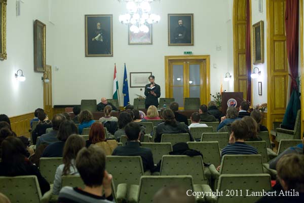 Az ELTE BTK kari tanácsterme keretezte a Trefort Irodalmi Esték december 1-jei alkalmát (is). A zöld bársonyfotelok és a boltozatos terem fehér falain lógó ódon portrék magasztos légkörében zavartan és ünnepélyesen nézett egymásra a közönség és Kemény István, ám hamar kiderült, hogy minden látszat ellenére kedélyes kávéházi beszélgetés részesei lehetünk, nem pedig afféle egyetemi pompáé és komolyságé. Vagy mégis? Nem, nem. Vagy de?