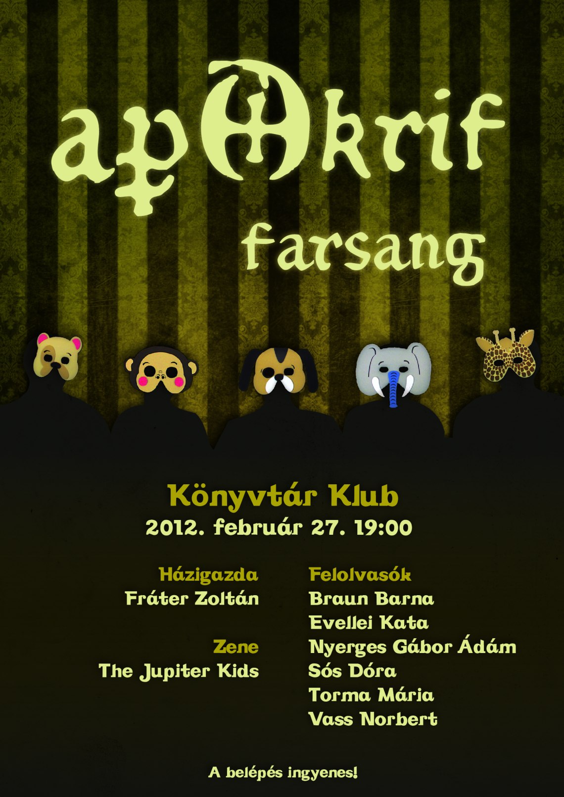 IV. Apokrif-farsang a Könyvtár Klubban (programajánló) apokrifonline2012. február 22.2012. február 22.Ajánló, Programok Bejegyzés navigáció ElőzőKövetkező (Könyvtár Klub) (design: Radnóty Zoltán) Megosztás: Facebookon való megosztáshoz kattintás ide.(Új ablakban nyílik meg) Facebook Click to share on X(Új ablakban nyílik meg) X Tetszik Betöltés... Kapcsolódó bejegyzések