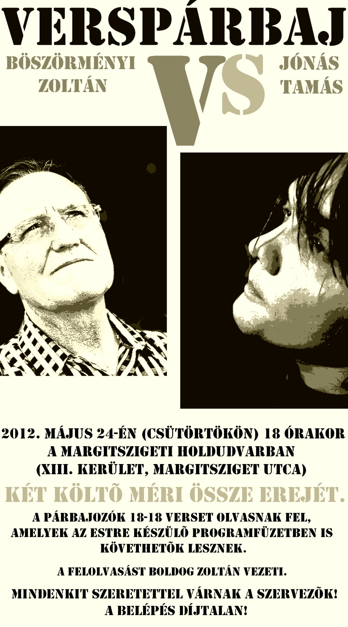 Verspárbaj Böszörményi Zoltán és Jónás Tamás között (programajánló) apokrifonline2012. május 22.2012. május 18.Ajánló, Programok Bejegyzés navigáció ElőzőKövetkező Megosztás: Facebookon való megosztáshoz kattintás ide.(Új ablakban nyílik meg) Facebook Click to share on X(Új ablakban nyílik meg) X Tetszik Betöltés... Kapcsolódó bejegyzések