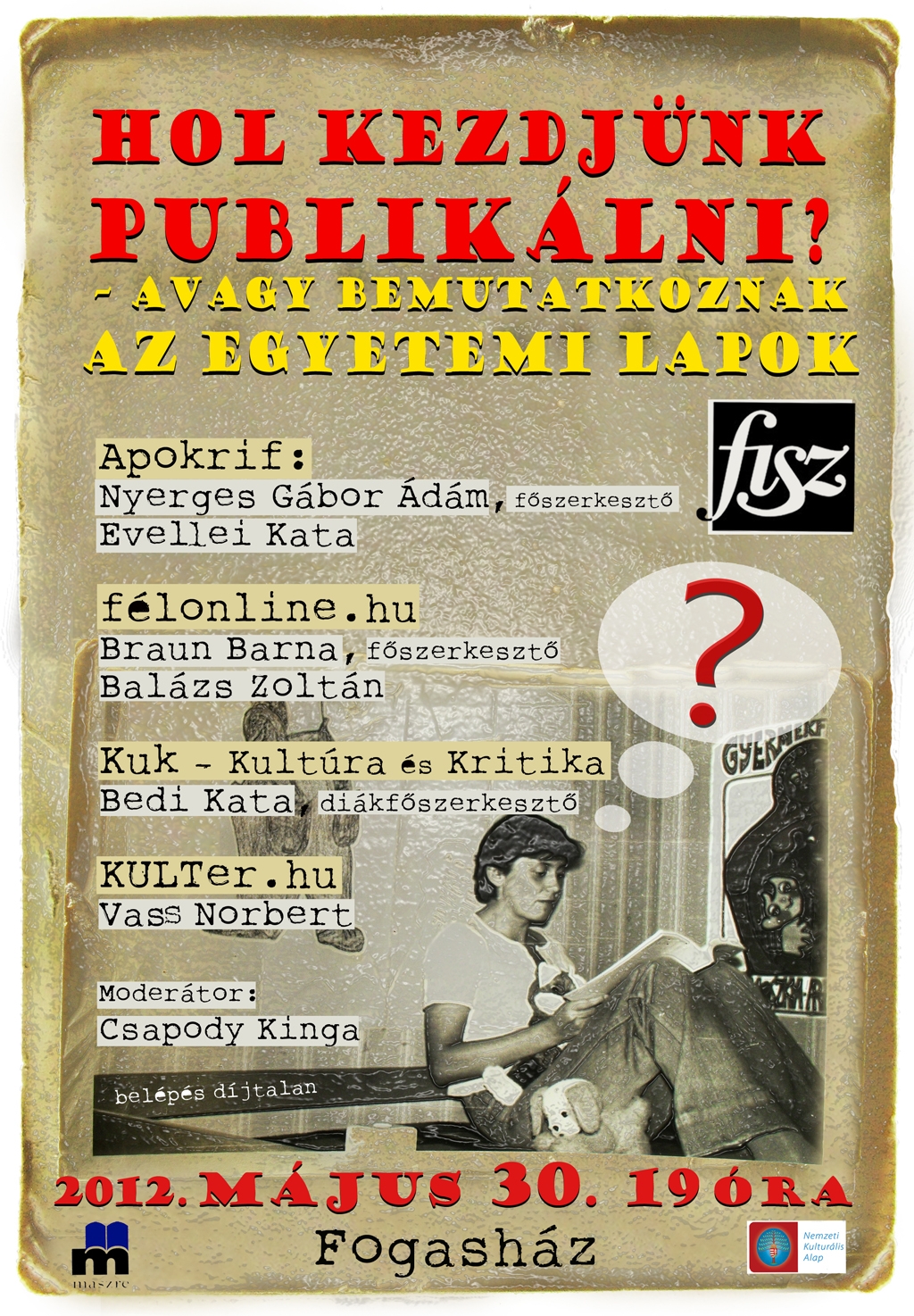 Hol kezdjünk publikálni? – egyetemi lapok bemutatkozó estje a FISZ Klubban (programajánló) apokrifonline2012. május 26.2021. július 18.Ajánló, Beszélgetés, Programok Bejegyzés navigáció ElőzőKövetkező Megosztás: Facebookon való megosztáshoz kattintás ide.(Új ablakban nyílik meg) Facebook Click to share on X(Új ablakban nyílik meg) X Tetszik Betöltés... Kapcsolódó bejegyzések
