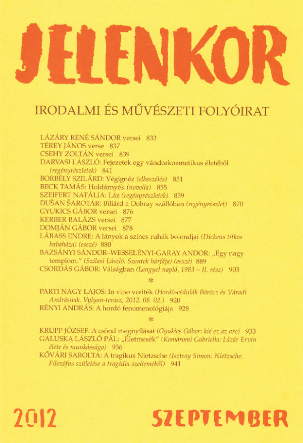 tanulmányát közli. A Népszabadság 2012. szeptember 15-i számában olvashatjuk Nyerges Gábor Ádám kritikáját Darvasi László Vándorló sírok című kötetéről: Változatok félhomályra. A Prae.hu-n Vass Norbert számol be a Merre van Sztálinváros vége? Kortárs művészet és nemzeti identitás című beszélgetésről: Hol ér véget egy beszélgetés, hol kezdődik egy vita?