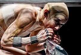 A Természetes Vészek Kollektíva előadásának kezdetekor úgy éreztem, mintha csak a Pendragon legenda főszereplője lettem volna, aki a regény egy emlékezetes jelenetében genetikailag módosított, halhatatlan élőlényekkel szembesül. Az akváriumszerűen megvilágított tér közepén egy szorongató méretű, zárt üvegdobozban fekszik valami. Vagy valaki. Gézbe öltöztetett, nemtelen testéből drótok és elektródák lógnak ki, kezdetben ezek tartják életben. A lét előtti és utáni bezártságra, természetes és természetellenes szűk terekre enged asszociálni a kép, az anyaméhre és a koporsóra. A dobozt és benne Góbi Ritát, két oldalról látja a közönség, a kivetítőkön pedig azt is, amit felülről figyelve látnánk a kalitkában történtekről: néha pontosan azt, néha effektekkel torzítva, röntgenfelvételhez hasonlóan, fénypászmákkal manipulálva a valóságot.
