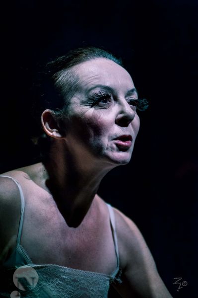 Ezt a dinamizmust, életteliséget az őket – és minket – körülvevő tárgyi környezet ellensúlyozza. A rendkívül kopár, jóformán csak csupasz fémszerkezetekből, szabadon lógó drótokból és műanyag ponyvákból álló díszlet elemi erővel jeleníti meg a darab sivár, sötét világát. A mindent betöltő feketeséget az itt-ott, egy-egy sarkot bevilágító színes fények törik meg, amelyek azonban sohasem tartanak sokáig – a sötétséget ugyanis a darab tanúsága szerint lehetetlen elűzni. Ennek egyetlen alakba sűrített jelképe az éjt alakító Nagy Mari, aki az előadás folyamán végig ott ül a nézők szeme előtt: figyel és vár, mozdulatlanul, mint kezdet és vég. Ez a kiiktathatatlan jelenlét összefogja az előadást, és az állandóság érzetét kelti, de nyugtalanító is: sohasem lehet tudni, az éj mikor szólal meg vagy tesz egy váratlan mozdulatot, hogy, saját természetét megcáfolva, beleavatkozzon a szereplők sorsába. Az általa viselt fehér hálóing sajnos némileg megtöri a szigorú, rideg összhatást – a figura így kissé talán túlságosan nagymamás jelleget ölt, amire a színésznő kifejezetten emberi, érzelmes játéka is ráerősít, ellentmondásos végeredményt hozva létre. Nagy Mari éje nem kérlelhetetlen, ősi erő, hanem, amint azt Martinovics Dorina Tündéjével való közös jelenete mutatja, az emberi lelket ismerő és vele együtt érző transzcendens lény. Szokatlan, de érdekes értelmezés ez, ha nem is lehet vele teljesen egyetérteni, és meglehetősen el is üt az előadás egészének koncepciójától: a minket körülvevő világ részvéttelenségétől.