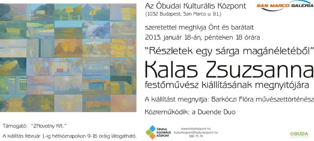 Kalas Zsuzsanna festőművész Részletek egy sárga magánéletéből című kiállítását képzőművészeti rovatvezetőnk, Barkóczi Flóra nyitja meg
