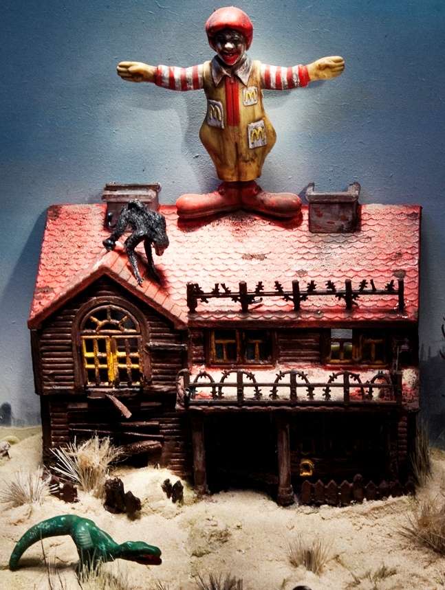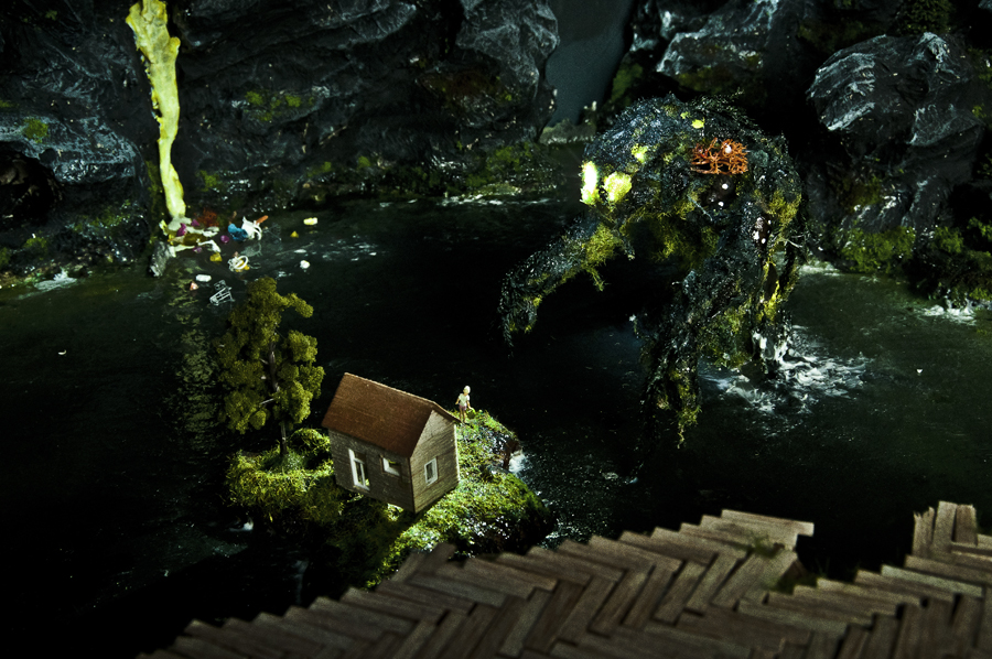 A kiállítás minden bizonnyal felülkerekedik a dioráma klasszikus kép/idő/tér rendszerén, s önálló életre kelnek az itt szereplő munkák. Az új kontextusba való helyezéssel újradefiniálódik a műfaj és annak a 19. századig visszanyúló emlékezete. A kiáltott munkák hol játékosak, hol erőszakkal telítettek, de minden esetben a jelenségek összefüggését és az egyensúlyban lévő ellentéteket tekintik kiindulópontnak. A tárlatot meghatározó paradoxon éppen abban fogható meg, hogy első pillantásra egy „kortárs makett-tárlatnak” tűnik, ezzel szemben bizarr, fiktív és utópisztikus kontextusba ágyazott súlyos politikai kérdéseket feszeget.