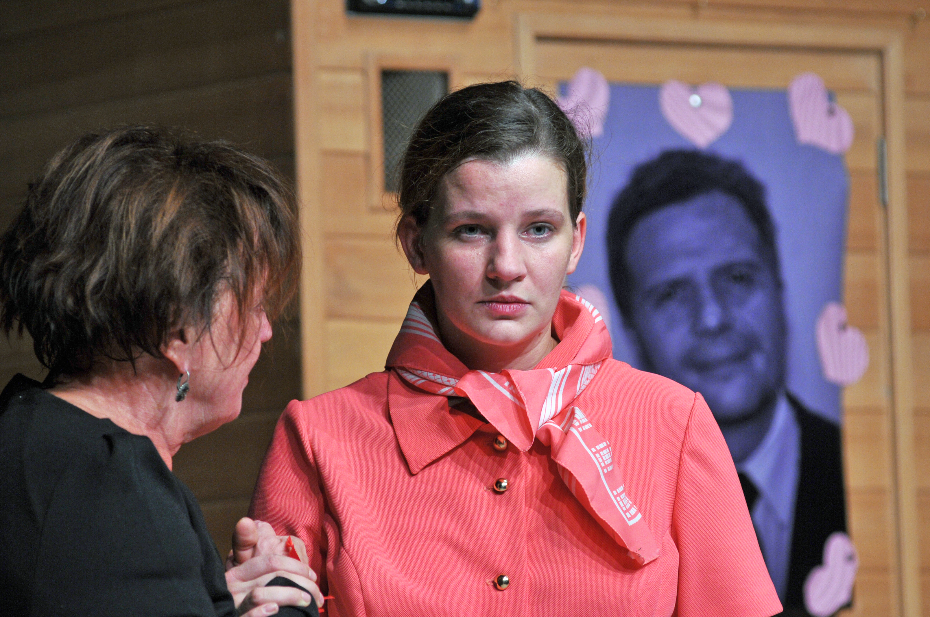 Az előadás minimális díszlettel dolgozik, Imoláék lakása, a Beadó presszó és a rendelő mindössze annyiban különbözik egymástól, hogy a színpad jobb vagy bal oldala van-e használatban, ill. a lakás új eleme a karácsonyra kapott szauna. Szimbólummá emelkedése a giccs határát éri, a temetés után Karcsi arcképével díszítve a darab végéig „kísért” az apa emléke, s Pintér másik szerepben (Zalántay Norbert rendőrtiszt) történő feltűnése már csak az utolsó csepp a pohárban. Elmondható tehát, hogy a tér különlegesen szikár díszletezése, a szereplők játékának típusosra élezése, jelmezeik egyszerűsége és mégis maximális kifejezőkészsége tökéletes eszköztárnak bizonyul e téma megjelenítésére. Az előadás után hosszú-hosszú gondolkodásba telik, mire állást lehet foglalni a felmerült kérdésekben: Imola élete végleg elromlott? Lola felelősséget tud vállalni gyermekéért később is? Ágika és Tamás biztosan boldogtalanul fognak élni egy beteg gyermekkel?