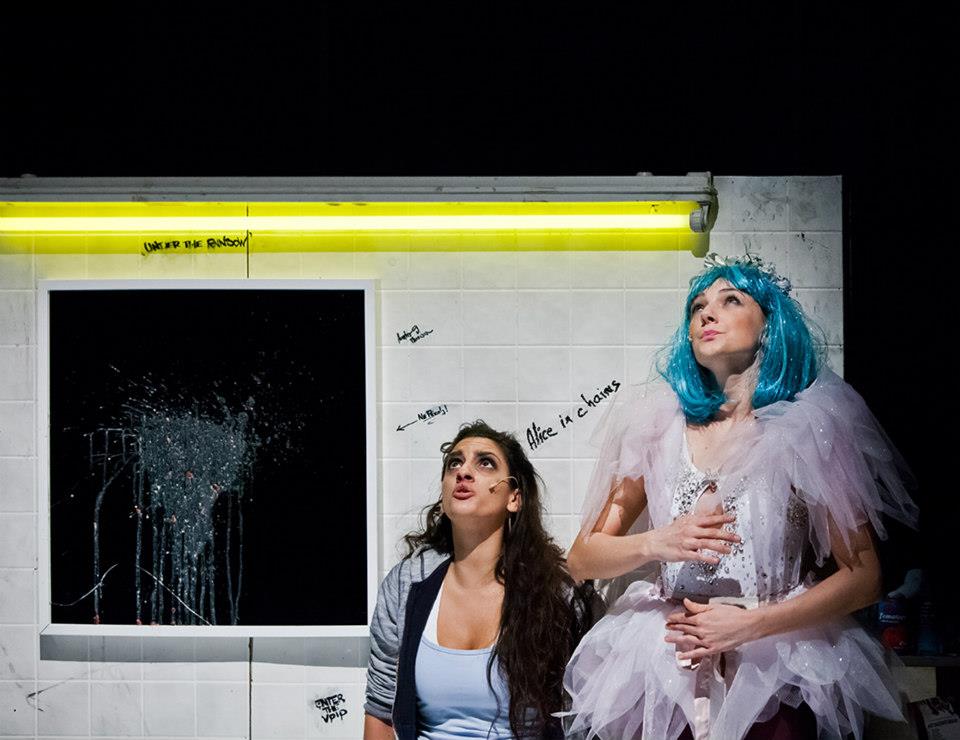 Ők csatlakoznak tehát Dorkához (Bakonyi Alexa) és Totóhoz (Kovács Ádám), akik nem nagyon válogatnak a szerek között, éppen azt használják, amire pénzük van. Dorkát egy kiadós heroinos hányás alkalmával látogatja meg fürdőjében a jó Északi Boszorkány (Borbély Alexandra), majd az elvonókúra lehetőségének felmerülésekor a rossz Nyugati Boszorkány (Pálos Hanna). Az eredeti mesei történet azonban a kábítószerek adta hazug élvezetek csábítása és megélése miatt vesz megmásíthatatlan, reménytelen, nyomorgó jövőbe torkolló irányt. Az előadás trash-sége éppen ez, a lecsúszottságot, a szivárvány, a híd, a metró, a létminimum alatt, alattunk, a nézőtéren ülő „tiszta” emberek alatt élést a saját maga mocskában láttató előadásmód. Aktualizáltságért sem kell a szomszédba menni, hiszen Dorka és Totó itt él velünk Budapesten, egészen pontosan a nyolcadik kerületben, úgy, ahogy SP és Harry Potter, vagy a túlsminkelt, emberfeletti szinten idegesítő talkshow-műsorvezetőnő és a három, toxikus mámorban vonagló, tűhegypupillájú, stroboszkópfüggő idegen srác is, akik a Nyugatiba igyekeznek új anyagért.