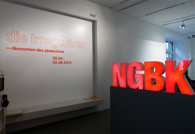 A Die Irregulären – Ökonomie des Abweichens című kiállítás 2013. április 20. és június 2. között volt megtekinthető a berlini Neue Gesellschaft für Bildende Kunstban.