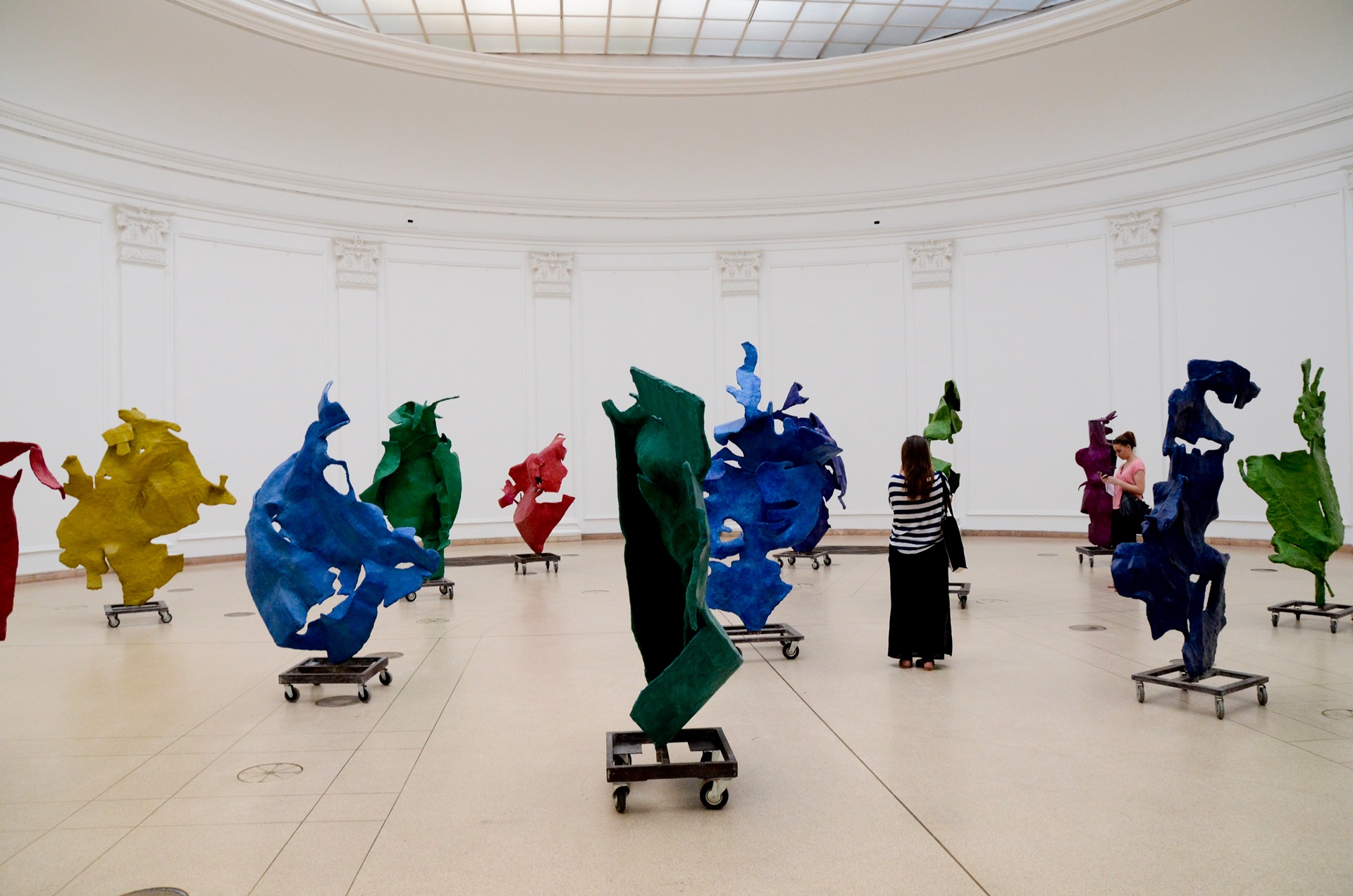 Ezt a dinamikus felülírást variálja tovább a Szellemeim-sorozat, felkeltve mesei és mitológiai képzeteinket; a „lobogó”, sokféle irányba nyúló szobrok sárkányokat, mesefigurákat juttatnak eszünkbe, méghozzá erősen komikus módon, ugyanis az önmagukban (vagyis elvonatkoztatásaink hiányában) meghatározhatatlan alakok gyakran vidáman tátogó űrszörnyeknek tűnnek. Ha közelebb lépünk a szoborcsoport tagjaihoz, az alakokon szemeket, szájakat, fintorokat is észrevehetünk, de a kitüremkedések olykor furcsa testhelyzetben pózoló embereknek látszanak, akik egymásnak kiáltoznak, vagy cipelnek valamit. Szövetszerű mesevilág, szellem-birodalom jön így létre, mely nem ad kezünkbe előre kidolgozott narratívákat; asszociációink segítségével mi magunk „írhatunk” meséket a könnyen formálható alapanyagból, és találkozhatunk a voltaképp általunk teremtett figurákkal. A Szellemeim cím ráadásul utal is játékosan az asszociációk, a szellem többféleségére: szellemek mint képzetek – szellemek mint eltérő világalkotási módozatok.