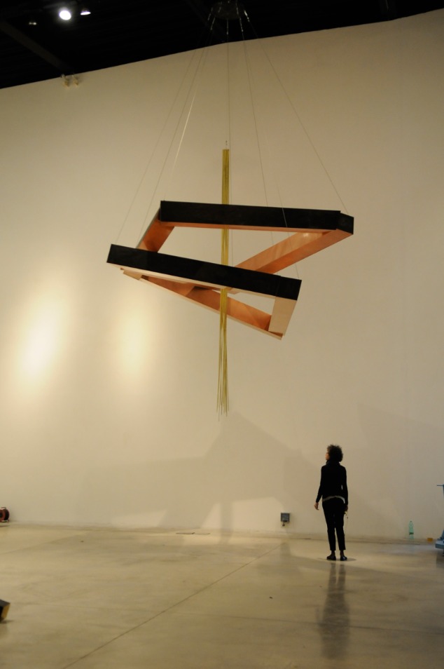 Az építészet és a szobrászat határán billegő, geometrikus absztrakcióba hajló installációk sajátos térélményt hoznak létre. A fizikai erőkkel operáló munkák közös jellegzetessége a precizitás, az éles formák alkalmazása és egyfajta szikár, de nem nyomasztó monumentalitás. A művek erő- és türelem-játékok, amelyek egy-egy lehetséges egyensúlyi helyzetet mutatnak be.[iii] Ezek az egyensúly-állapotok azonban törékenyek és időlegesek. A művek egy csoportját az anti-gravitációs installációk alkotják, amelyek a földi nehézkedést legyőzve a térben lebegni látszanak. Ide tartozik a Yugao-Jole, az Iride, valamint az Aquila.