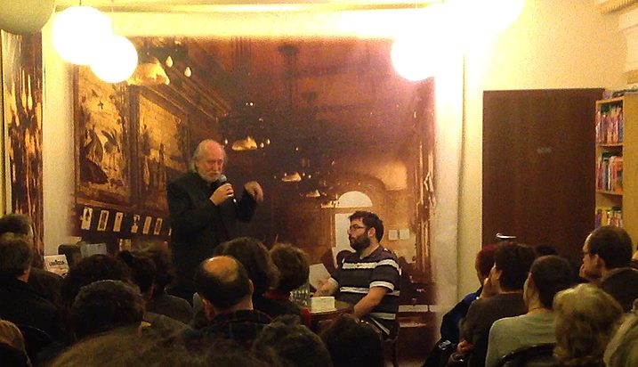 „…és jönnek a különböző történetek, történetdarabkák…” – jellemezhetnénk Krasznahorkai László saját szavaival a január 8-án este, az Írók Boltjában megrendezett beszélgetést, melynek során Szegő János, a Magvető szerkesztője kérdezte a szerzőt. Túl sok kérdésre nem is volt szükség, hiszen Krasznahorkai élőszóban is igazolta csodás elbeszélő-történetmondó képességét, erősítve azt a Margócsy István által megfogalmazott, a szerző regényei alapján igencsak érvényes megállapítást, mely szerint „»természetes« módon epikus alkat” (Könyvvilág, 1986. április). A beszélgetés elején beharangozott ígéretéhez híven valóban nyíltak a zárójelek az újabb történetek okán, Krasznahorkai ontotta magából azokat a hosszabb-rövidebb sztorikat, amelyek valamilyen módon kapcsolódnak az általa Háború és háború-projektnek nevezett többéves, nem csupán írásból álló munkához, sokszor félig tervezett, félig spontán történésekhez, amelyeket az élet (is) ír. Ugyanis a cél: átírni valamit a valóságba, változtatni annak szerkezetén.