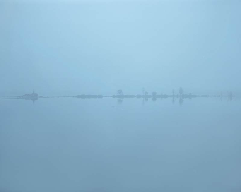 A TOBE Galleryben látható Ellensúly című tárlat felvételeinek közös nevezője a víz. A csendes, nyugodt, háborítatlan vízfelület, illetve az ég kékjének találkozása és összeolvadása sajátos lebegést eredményez, elbizonytalanítja a nézőt. Izgalmas játék az elsőre szinte absztraktnak tűnő képeken fogódzót keresni, segítséget a szemnek. Időbe telik, mire a látvány átadja magát, a keresgélés elnyújtja a befogadás pillanatát: a fotók időt követelnek, elmélyülést. A fotográfiák által megragadott konkrét tartalom lassan bontakozik ki, úgy tűnik, ezeknek a képeknek nem tárgya van, hanem közege: a víz. A vízfelületek simák, zavartalanok. A táj mozdulatlansága irreális, még az ember sem képes megzavarni azt: a fürdőzők körül sincs fodrozódás. Ez a valóságtapasztalattal ellentétes, kicsit álomszerű képi világ egyszerre kelti a természet zavartalanságának képzetét, és figyelmeztet arra, hogy ez az érintetlenség illúzió.