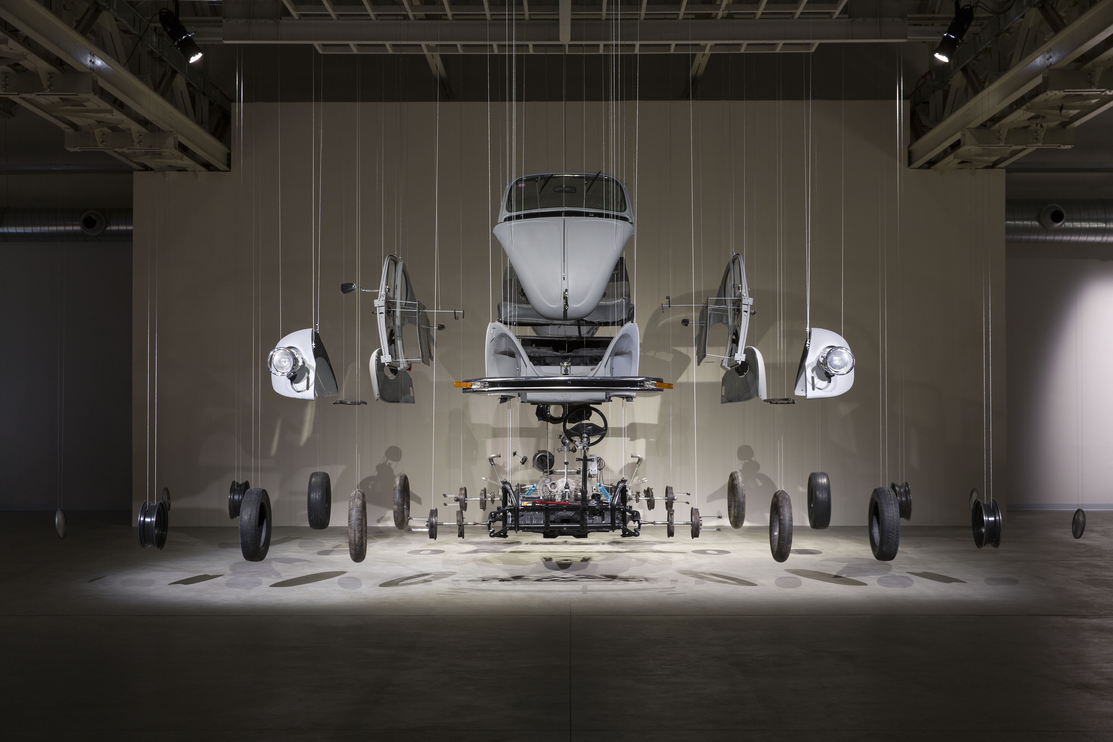 A mintegy tizenkilenc művet felvonultató kiállítás központi alkotása Ortega egyik leghíresebb és talán leginkább hatásvadász munkája, a Cosmic Thing (2002), a 2003-as velencei biennáléről ismerős, szétrobbantott bogárhátú Volkswagen. A személyes élményen túl (Ortega maga is bogártulajdonos volt) a kocsi szorosan kötődik egy történelmi korszakhoz. A bogárhátút, mint olcsó népautót, a harmadik birodalom idején Adolf Hitler kérésére fejlesztették ki, hogy aztán a hatvanas években a háború utáni gazdasági fellendülést követő jólét szimbólumává váljon. A mára ikonná vált négykerekű auráját növeli, hogy gyártását a kétezres évek elején leállították. Az alkatrészekre szétszedett, majd a levegőben pontosan kimért távolságra, egyenként felfüggesztett csavarok, kerekek, lámpák, gumiabroncsok megfagyott kozmikus vízióvá alakulnak át. „A széttöredezettség logikája magába foglalja az eshetőség, a véletlen, az esetlegesség, a múlékonyság, a befejezetlenség lehetőségét.”[1] – ecsetelte Ortega az installáció egyik értelmezési irányát, ugyanakkor a darabjaira szétszedett tárgy felidézi az analitikus módszer reménytelenségét is. A dirib-darabokra széthullott, immár működésképtelen autó hasonlatos a kitömött és kipreparált, üvegszemű, formalin szagú kardfogú tigrisre: minden a helyén van, csak az elevenség hiányzik belőle. Ahogy a mikéntre kíváncsi kisgyerek kezében a távirányítós autó, úgy némul el Goethe gombostűre szúrt lepkéje. Erre az ironikus értelmezésre a címválasztás is ráerősít.