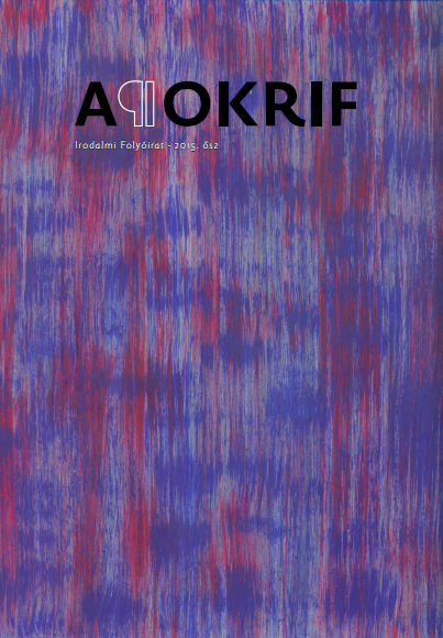 Az Apokrif hamarosan megjelenő őszi számának versrovatában Gál Soma, Hyross Ferenc, Nyirán Ferenc, Sebők György és Szabó Csanád versei, Asbóth Balázs, Juhász Tibor és Nyerges Gábor Ádám prózája, valamint Háy János drámarészlete olvasható. A kritikarovatban Schein Gábor és Szvoren Edina, valamint az első köteteikkel az idei Könyvhéten debütáló három Apokrif könyves szerző, Bödecs László, Juhász Tibor és Szendi Nóra könyveiről írunk. Lapunk friss számának képanyagát kabai lóránt munkái szolgáltatják.