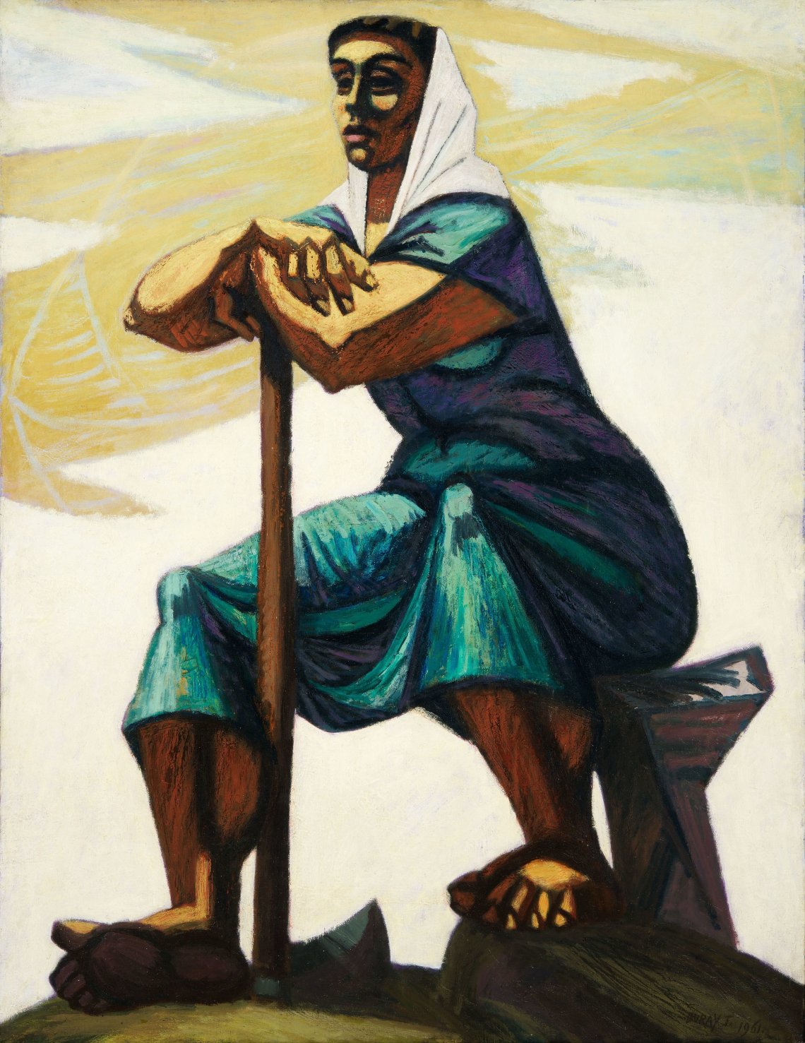 Visszatérve a kiállításra. A kiállítás szürke, de nem is lehet más. Nyilván a Galéria raktárai nyíltak meg (főleg), és hát ezeket vásárolták össze anno. Tehát kultúrhistóriai, művészetpolitikai szemle az, amit látunk. Kácsor Adrienn tárta föl, hogy az egykori állami vásárlások anyaga 90%-ban különböző múzeumok, de főleg a Galéria raktáraiban szunnyad. Jó, ha 30-40 évenként előkerülnek ezek a műtárgyak. Jó néhányról inkább azt kellene mondanunk, hogy kultúrtörténeti dokumentumok (például Bernard Buffet két hatalmas vászna, amelyekről remélem, hogy soha többé nem kerülnek elő).
