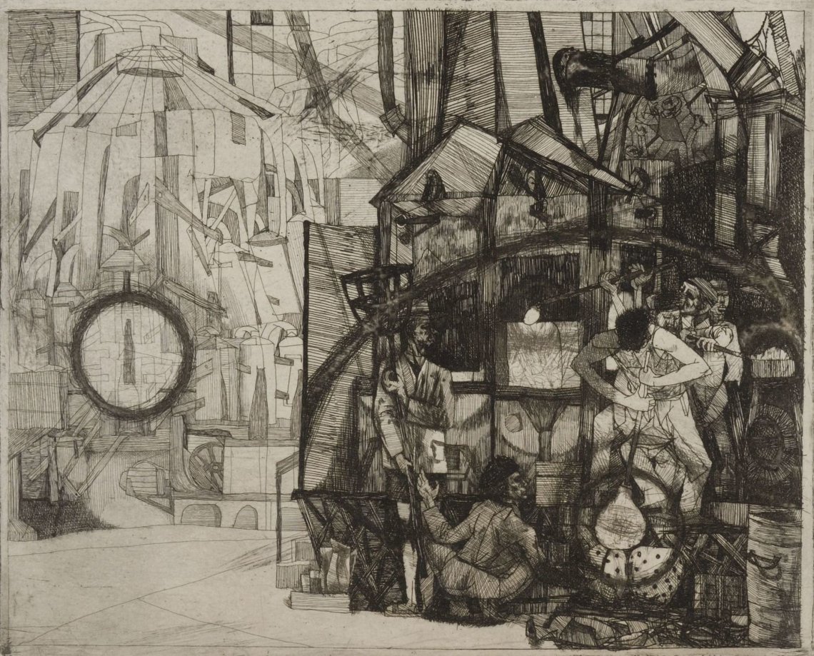 A grafikai anyag nem tükrözi azt a közvélekedést, hogy a hatvanas évek a grafika aranykora volt. Ez az anyag inkább a szocreál, mint a szocmodern trendet tükrözi. Amúgy jellemző a korra, hogy 1972. december 12-én a Lenin körúton a rikkancs így árulta az esti újságot, hogy: „A rézkarckirály halálával, Esti a Hírlap!” A rézkarckirálytól egyetlen, rosszul megvilágított rézkarc szerepel a tárlaton. Az a terem egyébként is rémes. Kondor Soha többé című vásznát egy lámpa hátulról (!) átvilágítja. Az említett, Emlék az üveggyárból című rézkarca viszont sötétben van, ahogy még sok minden ebben a teremben. Például Bernáth pasztellje, Kohán nagyméretű képe, és valahol az állványok közé dugva Baranyay András két bernáthos ihletésű litográfiája (ami voltaképpen egy, mert két fázisnyomatról van szó). Ez az a terem, ahol eluralg a művészkedő installáció, valóságos environmentet alkotva. Értem én, hogy szocialista építés, állványok, meg raktári szituáció, meg orosz avantgard, meg magyar Rajk László, de hát mindez a művek és a nézők kárára!