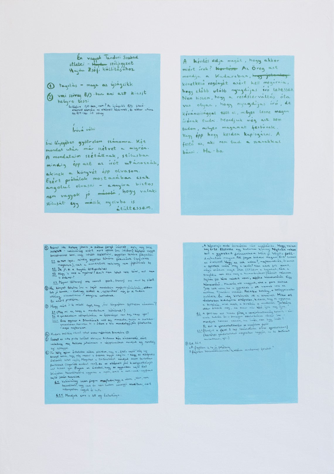 – De nekünk, nekünk, a többieknek! – próbálom én. Mikor lesz kiállításod? – nyomasztom. Írtál már a galériáknak?