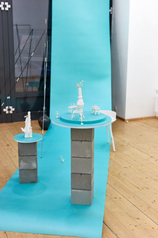 Visszacsatolva a nyitóhasonlatomhoz: hogy egy étkezés a fentiekhez hasonló nyomokat hagyjon bennünk, a koncepció, az érzékenység és művészi kivitelezés helyes arányait kell eltalálni. Azért merészkedtem elő ezzel az analógiával, mert Tranker Katának az Epreskert Parthenón-fríz Termében és a Viltin Galériában kiállított művei éppen ezen elv mentén készültek. (Meglehet, hogy szintén a gasztronómiai hasonlatom rejtett indikátora volt a sóból és lisztből készült gyurma.) Tehát mind a Vénusz születése, mind Az elmosódó halmazok logikája című kiállításon szereplő művekre az átgondoltság, a cizelláltság, a gondos megvalósítás jellemző. Tranker Katára pedig az, hogy különösen jó érzékkel emeli ki műveinek metafunkcióit: tárgyai nemcsak önálló alkotásokként, hanem művészetelméleti, muzeológiai kérdések reflektív felületeiként is szolgálnak.