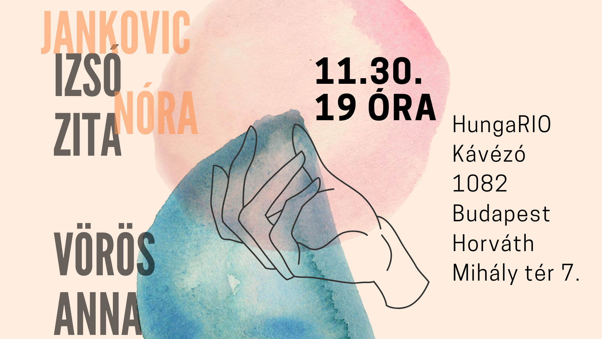Helyszín: HungaRio Kávézó (Horváth Mihály tér 7., a Fazekas Mihály Általános Iskola és Gimnázium mellett jobbra)