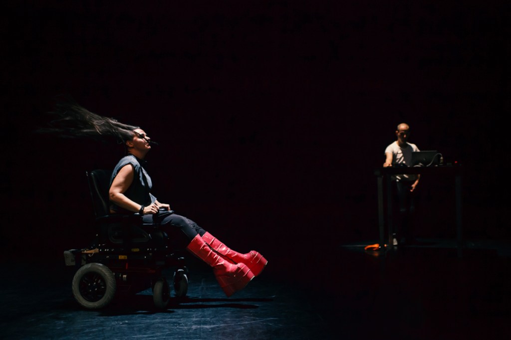 Egy kerekesszékes férfi hajt be a színpadra. A DJ lány már ott van, mellette is parkol egy tolókocsi, de abban egy hangfal van. A férfi nyolcasokat ír le az üres színpadon, majd füstöt fúj ki a tolókocsiból. Ezzel elkezdődik a férfira, nőre, keverőpultra és kerekesszékre tervezett performance.