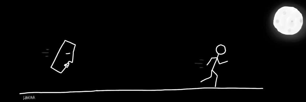 Futottam, ahogy bírtam, a táj már összemosódott. Néha azt a benyomást keltették, hogy sikerült lehagynom őket, de csak azért, hogy növekedjen bennem a rettegés, amikor ráeszmélek, hogy még mindig a nyomomban vannak, és ami a legrosszabb, hogy valójában rég elkaphattak volna, csak túráztatnak, ők tartják a távolságot. Évekig nem mertem megállni, szembenézni velük, rettegtem a következménytől. Évekig addig menekültem, amíg végül utol nem értek, vagy le nem zuhantam a világ végén. Végül összeszedtem a bátorságom, megálltam, és bevártam azt, amelyik sosem hagyott fel az üldözésemmel. Nem beszéltük meg, miért üldözött. Nem történt Disney-s összehaverkodás. Utolért, felébredtem. Nem tért vissza többé.