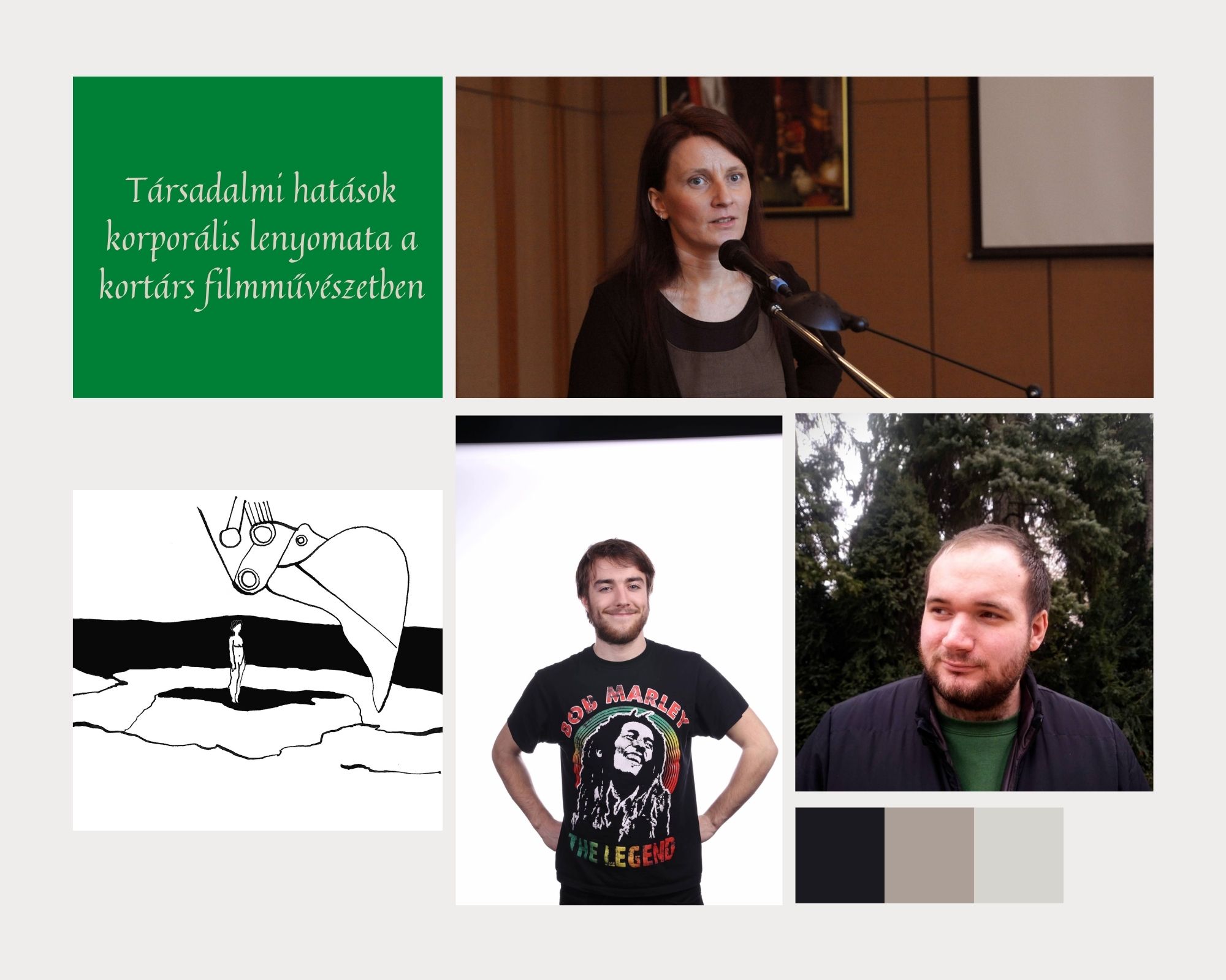 Az élénk eszmecserével úgy elment az idő, hogy alig maradt néhány percünk, mielőtt kezdetüket vették a rövidebb előadások. Ezen a napon három szekció közül is választhattunk; jómagam a Lengyel Imre Zsolt által elnökölt Beteg test szekció linkjére kattintottam. Az első előadó Bass Judit volt, aki új nézőponttal gazdagította Karinthy Frigyes Utazás a koponyám körül című szövegének értelmezését: amellett érvelt, hogy elbeszélésmódja alapján a mű nemcsak autopatográfiaként, hanem detektívtörténetként is vizsgálható. A szekcióprogram szerint ezután még két prezentáció volt hátra, Polyák Enikőé és Gregor Lilláé. Őket viszont nem láthattam, mivel az első előadást követően, olyasmit csináltam, amit egy hagyományos konferencián aligha tehettem volna: csupán néhány másodperc alatt átléptem egy másik előadótérbe. Ahogy a Krupp József vezette Az ókortól napjainkig szekció címe ígérte, az antik szerzőktől kezdve Jókai Móron és Bródy Sándoron át eljutottunk egészen a szocreál költészetig. Az irodalomtörténeti ív testmotívumokra fókuszáló pontjait Pártay Kata, Beszkid Judit, Pintér Kitti, Santavecz Anita és B. Kiss Mátyás felszólalásai képezték.
