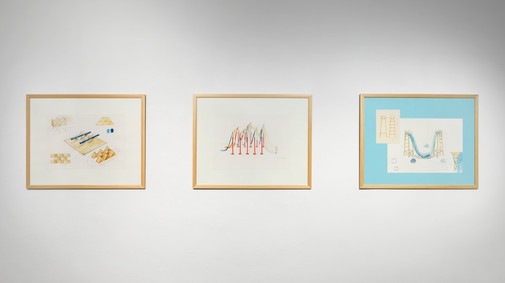 A tárlat magját az installációk alkotják, de a kiállítótér falára ezeknek a tervrajzait is kifüggesztetted. Miért mutatod meg őket?