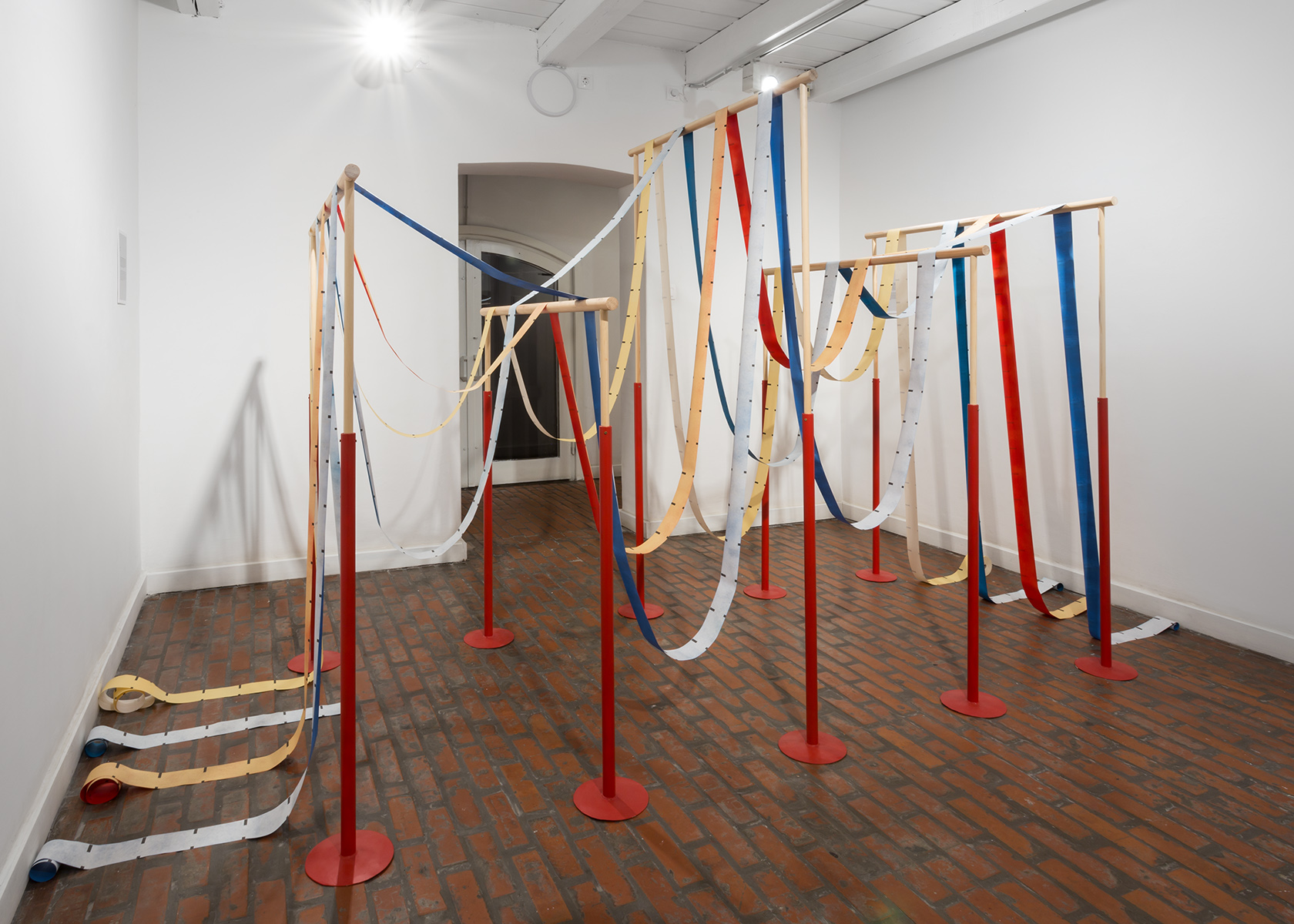 vas, fa, ATM-szalag, akril zománc, változó méret • Fotó: Juhász G. Tamás