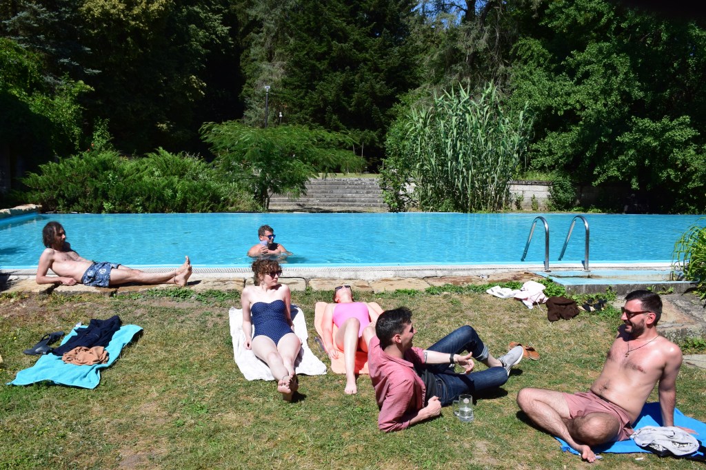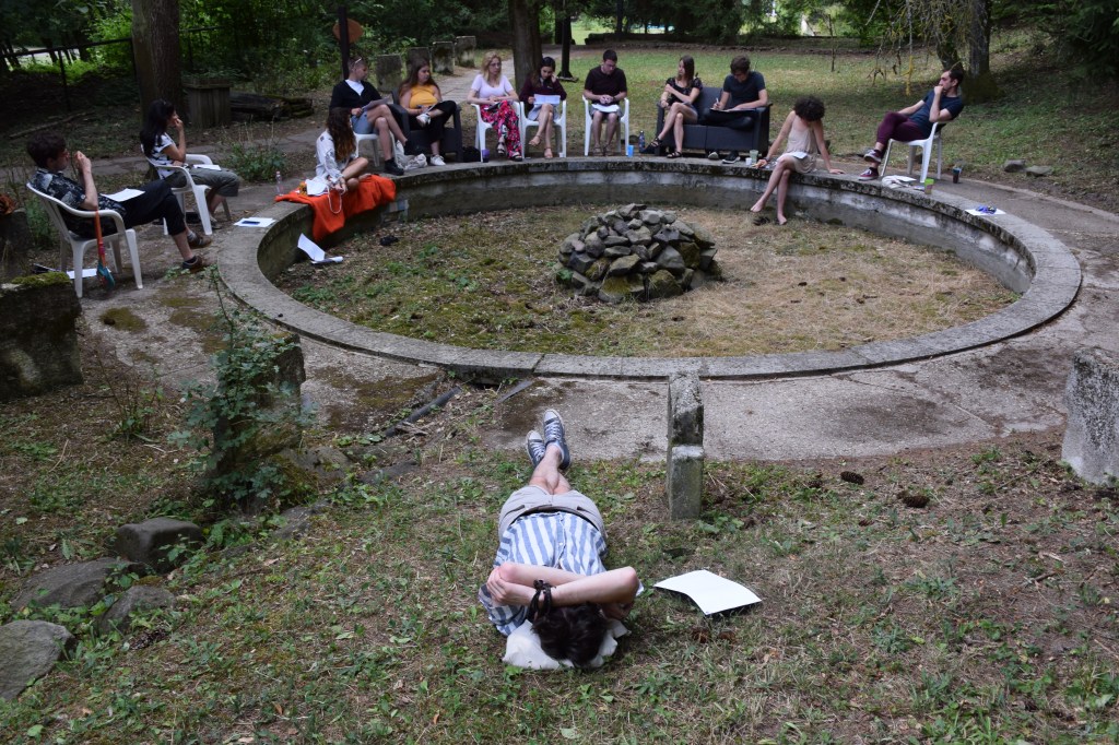 Az utolsó műhelyalkalmak azzal teltek, hogy a szerzők eldöntötték, ki és mennyit olvasson fel a tábor hagyományos záróeseményén, a Szövegpoklon. Verőfényes napsütésünk volt, a tűlevelű lombok között langyos szellő járt. Térerő és net híján továbbra sem tudtam, mi zajlik a táboron kívül. Rájöttem, hogy nincs is ennél tökéletesebb alkalom arra, hogy mártózzak egyet a medencében. A víz hűvös volt, mozognom kellett, ha nem akartam megfázni benne. Ahogy ott úsztam néhány irodalomtudós között, eszembe jutott, hogy valaki mesélte: a minap egy béka is megjelent a talpalatnyi strandon. Reméltem, ezúttal nem bukkan fel; vele nem akartam osztozni a medencén.