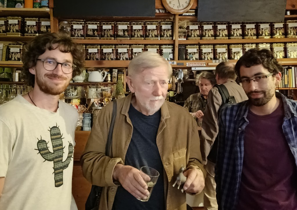 Tegnap egyébként Nagy Dani kötetbemutatóján voltunk. Furcsa, hogy az a címe a kötetének, hogy Úgy tűnik, az érzelmek megint kezdenek divatba jönni, bár utólag belegondolva eltalálja az uborkafát, már csak azért is, mert Dani verseiről az érzelem lenne az utolsó, ami eszembe jut. Lehet, hogy ez egy csavar. De itt több dolog is csavaros. Talán a saját alteritását hangsúlyozza a kötet. Vagy a hosszú cím igyekvése az el nem érhető „megfogalmazást” számolja fel? De talán nem is filozofálni kéne, Dani azt mondta a szerkesztési célról, hogy legyen olyan a kötet, mint egy vajaslekváros-kenyér. Hát nem csodálatos? És tényleg olyan lett. Az egyszerű, ünnepi ízek, és a gyerekkor óta folyamatosan csökkenő lekvároskenyér-méret derűs melankóliája! Azt hiszem, kezdek elérzékenyülni. Épp éteri lekvároskenyerek lebegtek a szemem előtt, mikor útitásam oldalba bökött: „Ezen majd még merengünk bőven, kisszamár, most azonban van még egy tiszteletkörünk Bozók Ferihez!” – és magával rántott.