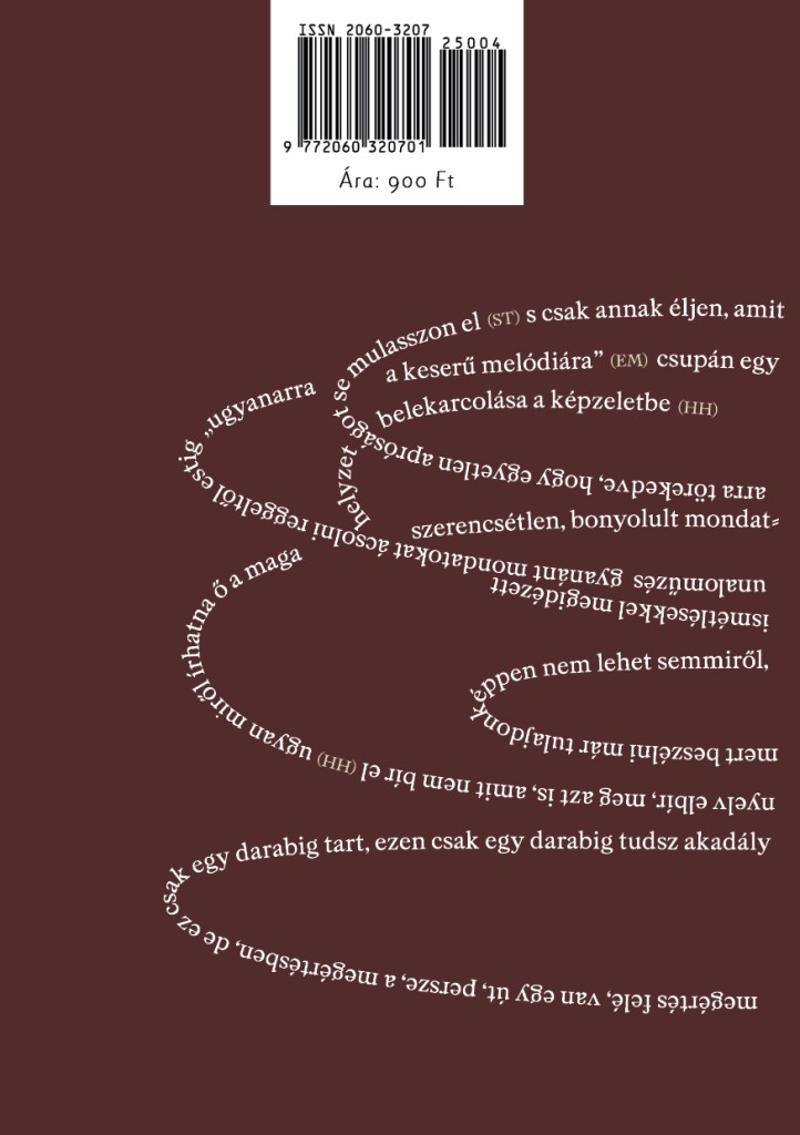 Téli lapszámával az Apokrif is csatlakozik a magyar szellemi élet október 9-e óta tartó ünnepéhez, és különblokkal köszönti második Nobel-díjas írónkat, Krasznahorkai Lászlót. A Sátántangó és Az ellenállás melankóliája szerzőjéről szólnak a folyóiratfüzet illusztrációi, amelyeket a Svéd Akadémia döntésével szerencsés módon egybeeső szentendrei Krasznahorkai-kiállítás, a Minduntalan anyagából válogattunk. Ehhez a képösszeállításhoz kapcsolódik a kiállítás kurátorával, Szilágyi Zsófia Júliával készített interjúnk, Koós István Krasznahorkai új regényét, A magyar nemzet biztonságát egyszerre recenzáló és folytató írása, valamint a borítóra Orosz Rebeka segítségével kikanyarodó mondatkígyó.